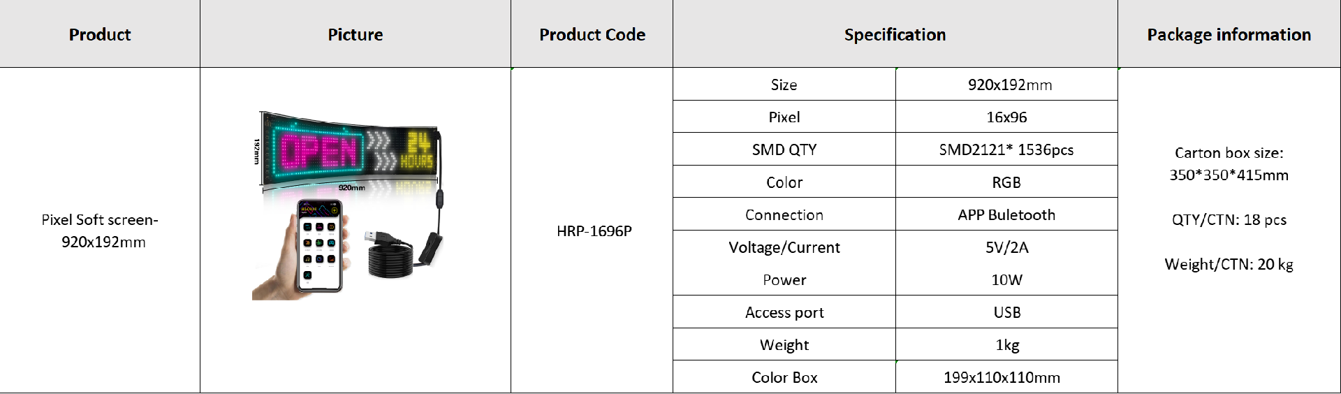 Pixel Soft screen- 920x192mm