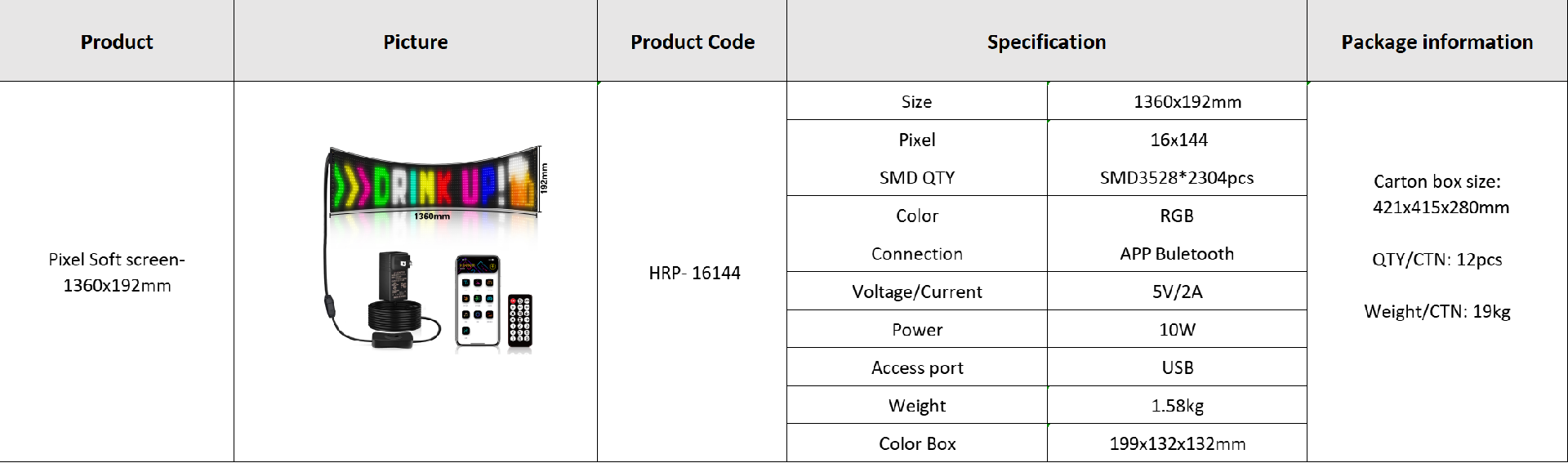 Pixel Soft screen- 1360x192mm